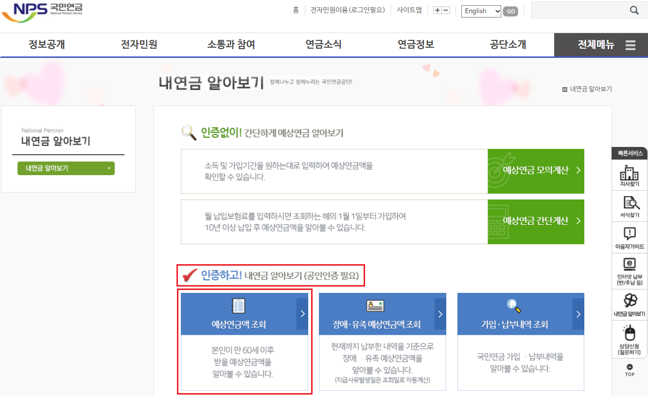 국민연금 예상수령액 간단 조회 방법 (인증없이)