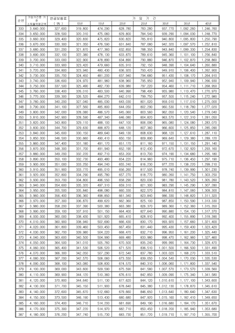 1. 연금액산정은 다음과 같은 수식으로 계산되었습니다.