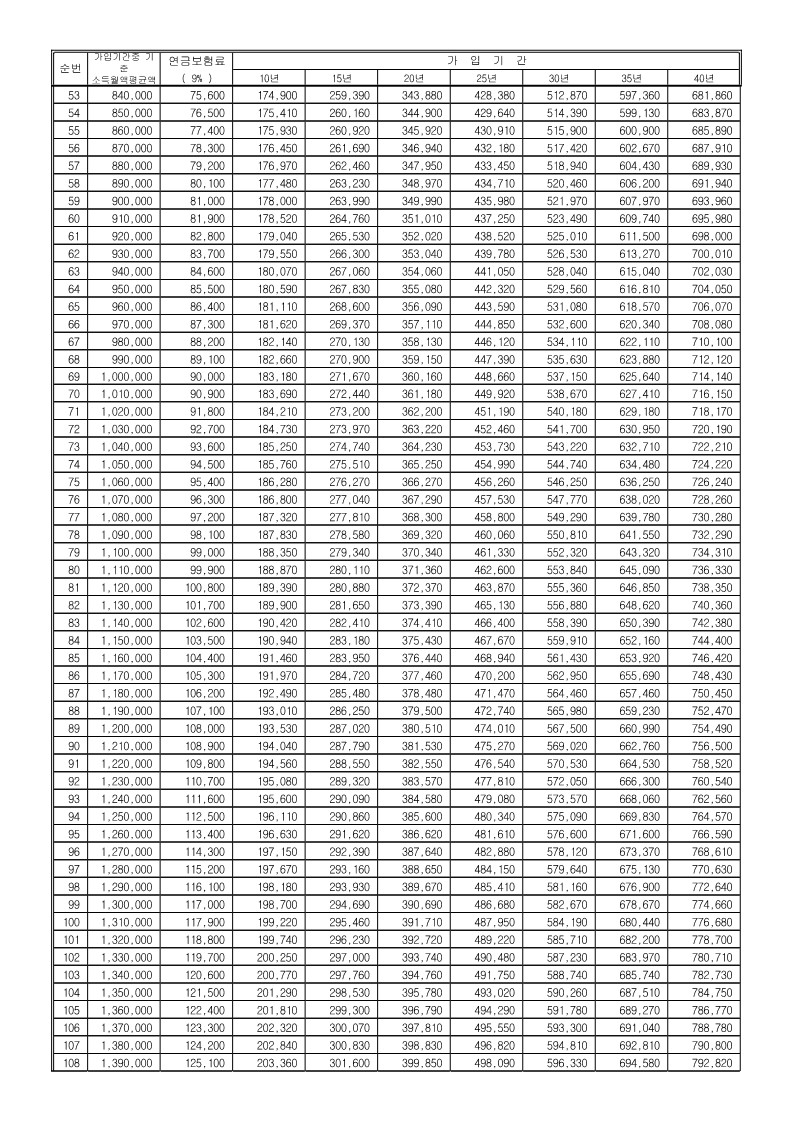 - 기준소득월액 5,240,000원 : 2021.1월부터 2021.6월까지 상한액 5,030,000원, 2021.7월부터 상한액 5,240,000원 가입가정