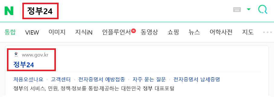 포털사이트에서 ‘정부24’를 검색합니다.