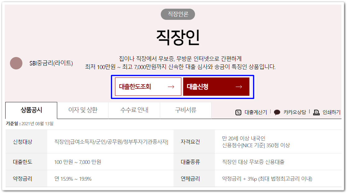 | 대출자격 | 만 나이 20세 이상의 급여소득이 있는 직장인 |