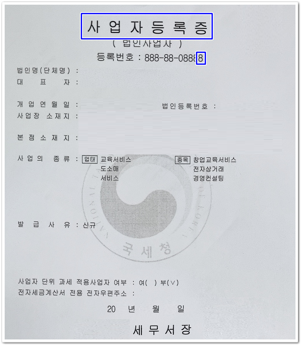 사업자의 사업자등록증의 등록번호를 확인하시기 바랍니다.