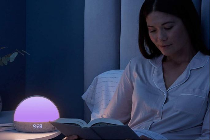 시계 디스플레이가 통합되어 있고, 아침에 깨울 수 있는 능력이 있어요. 이 기계는 나의 수면 의식을 도와주는데 휴대폰의 앱을 사용하여 어떤 수면치료도 가능해요. 취침 시간 판독하고 명상으로 전환 후 백색 노이즈로 전환할 수 있어요. 아침에 해돋이 알람으로 부드럽게 깨우고, 야간 조명 색도 선택 가능해요. 이 앱은 사운드 옵션을 제공하며 구입하면 6개월 무료예요.