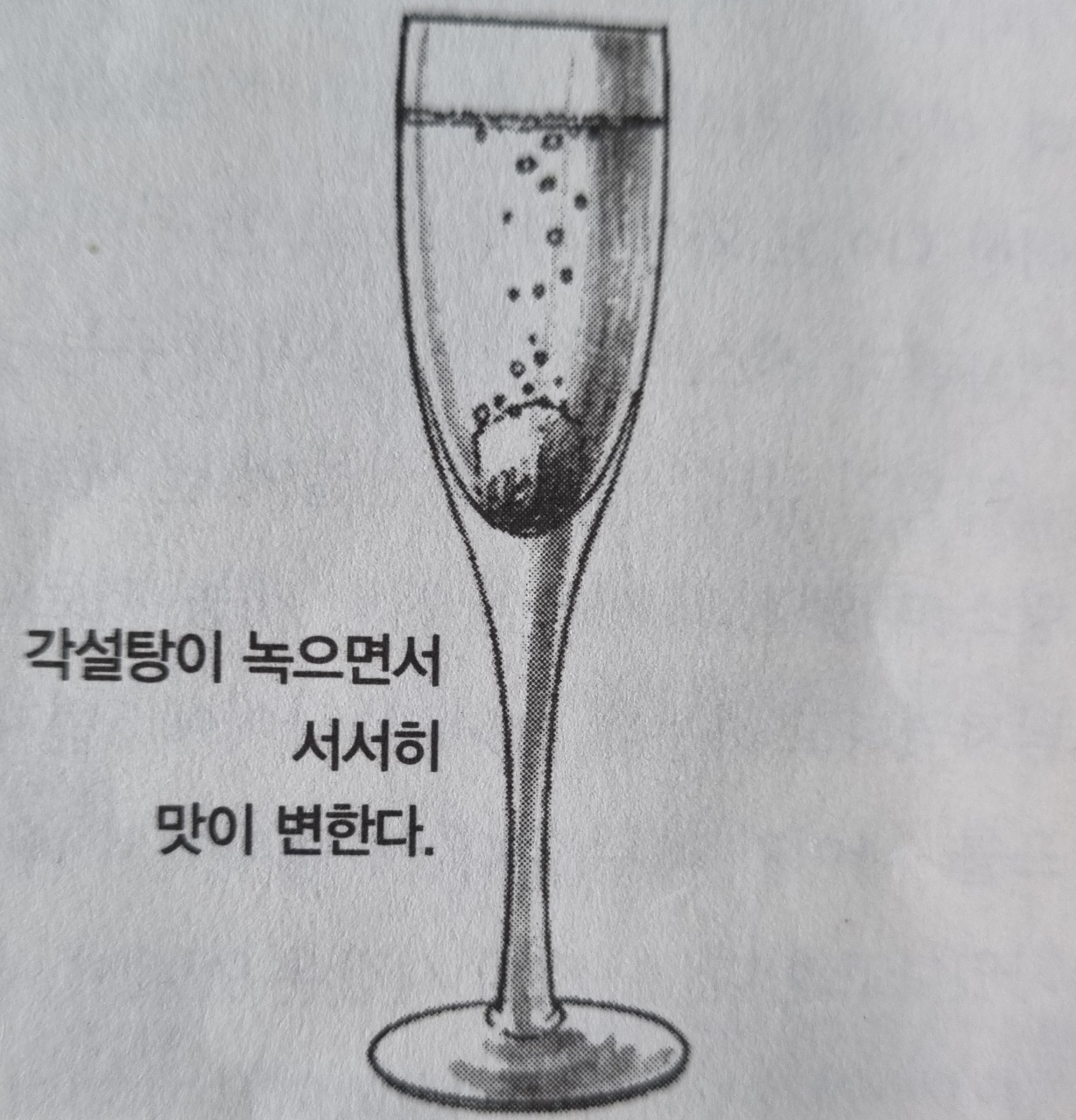 ⓓ각설탕이 녹으면서 서서히 맛이 변합니다.